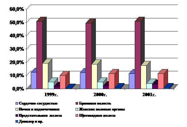 Сравнительный анализ структуры проведённых мною исследований по функциональной диагностике за период 1999-2001 г. представлены на Рисунке 4