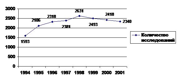 Динамика ультразвуковых исследований за 1999-2001 годы показана на Рисунке 3